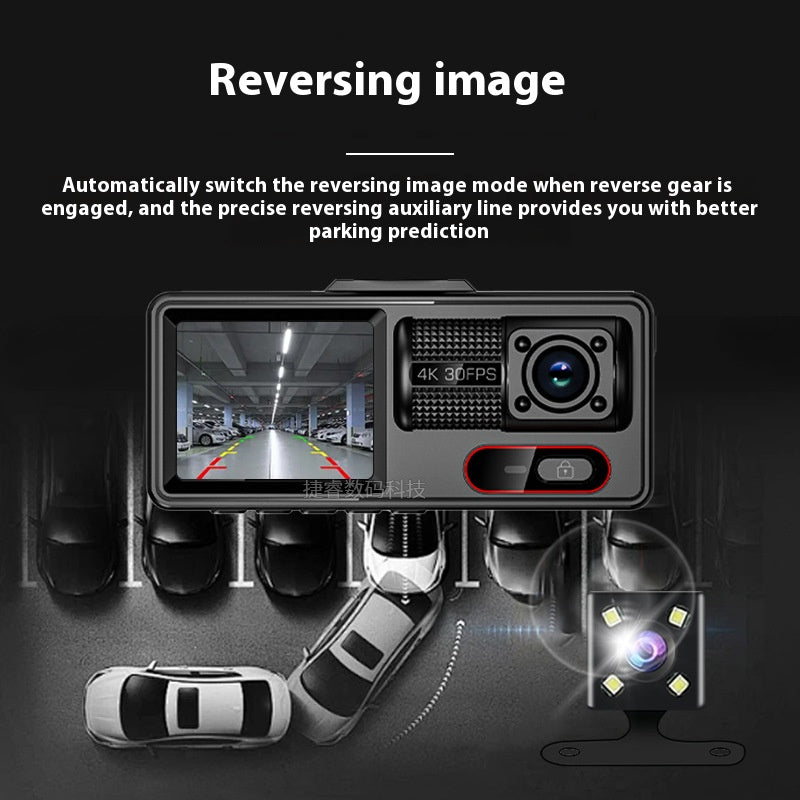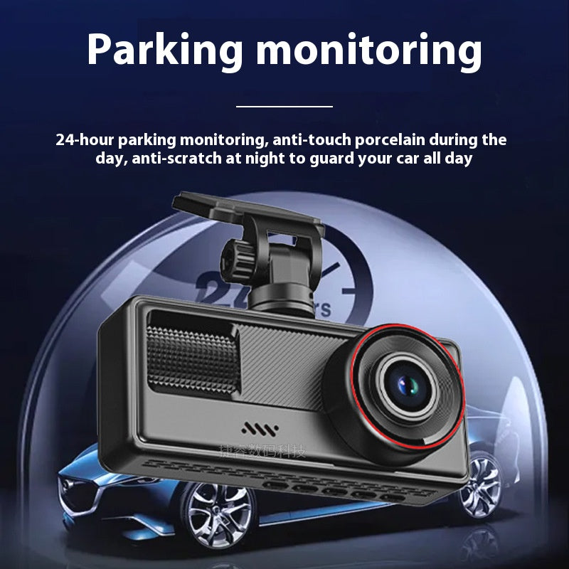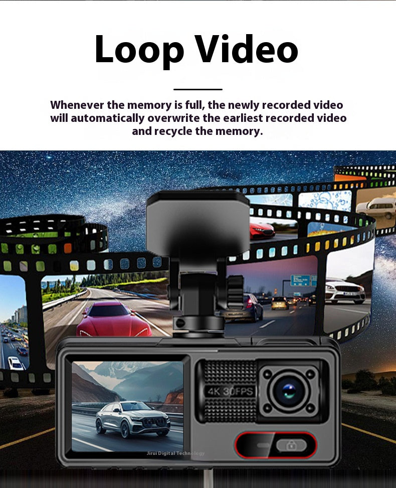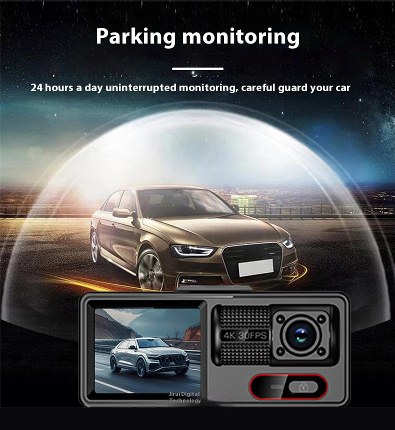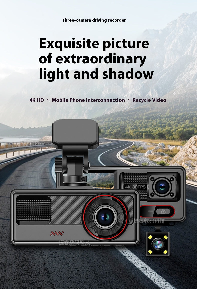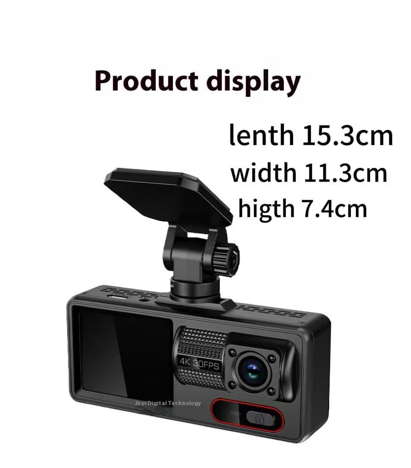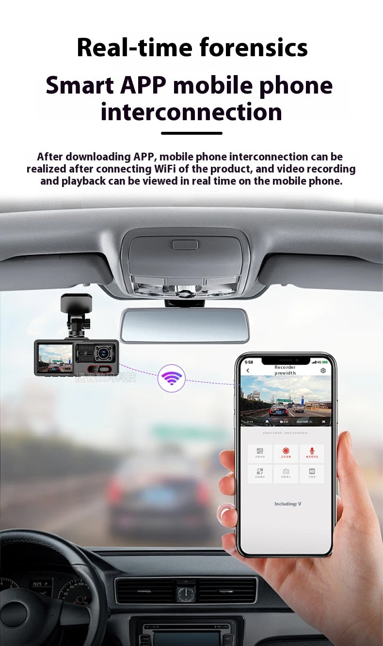 3 Channel Wi‑Fi Dash Cam  Front/Inside/Rear 1080P, Loop Recording, Parking Mode