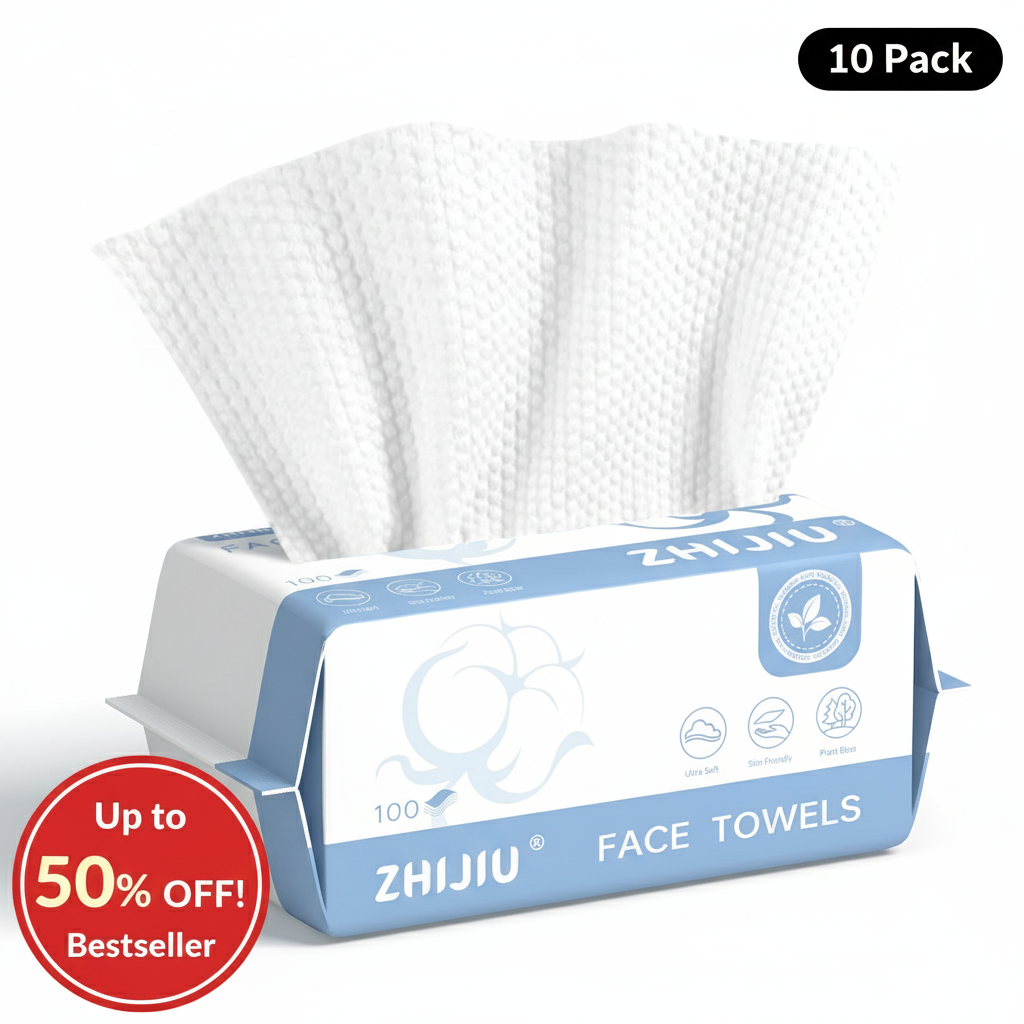 Disposable Pure Cotton Facial Towels 100Count, Biodegradable, Soft & Lint Free Dry Wipes for Makeup Removal