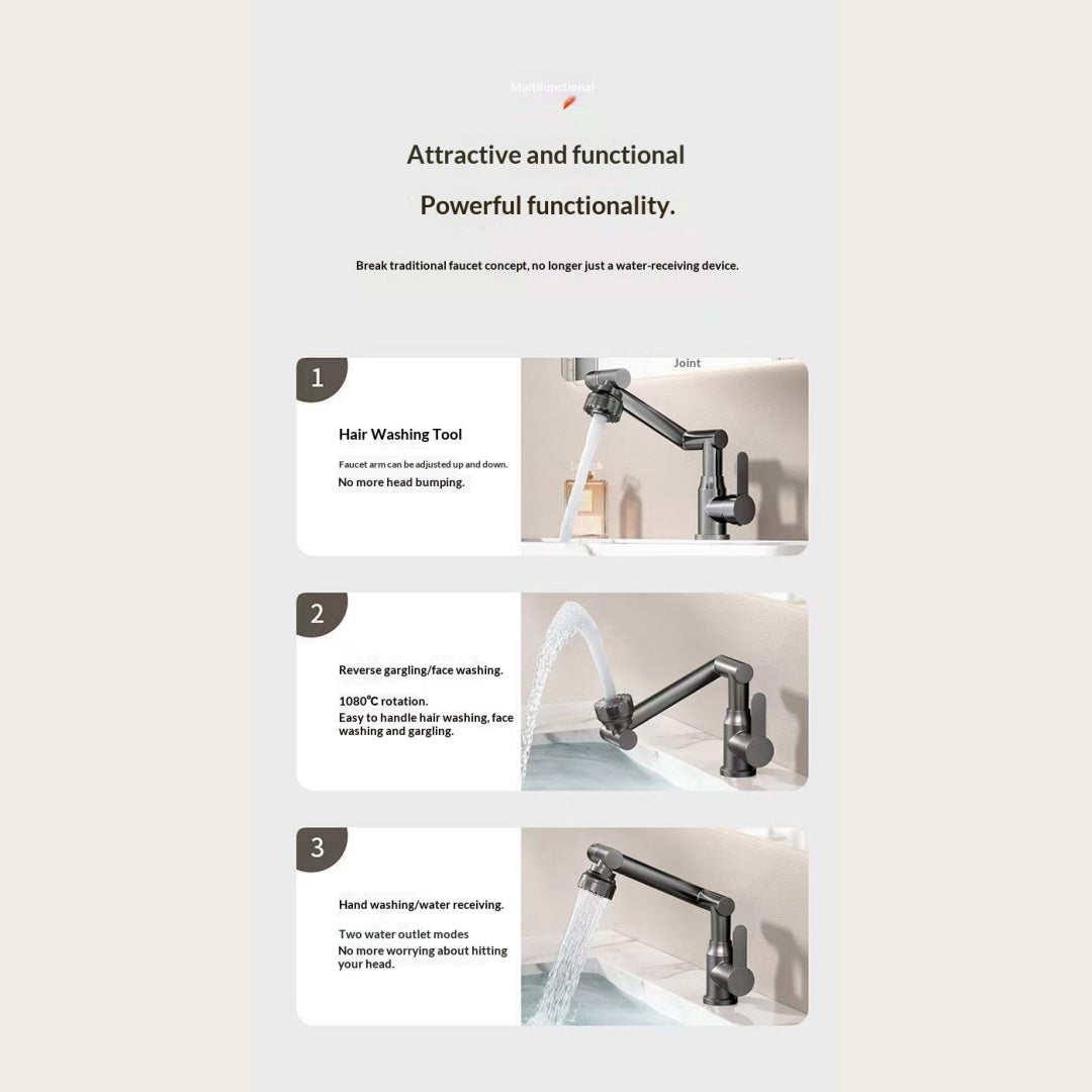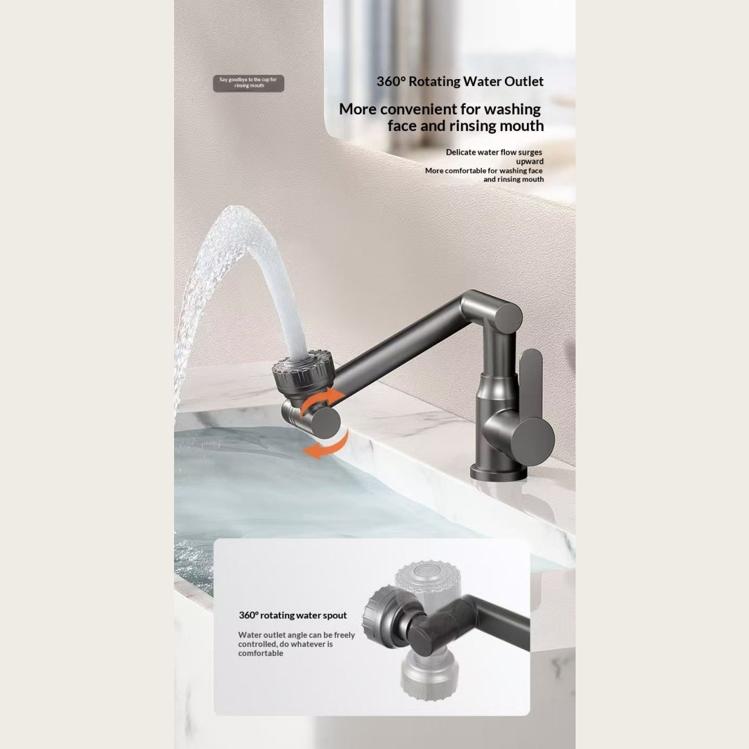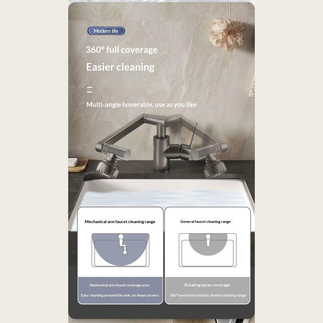 Cat Robotic Arm Bathroom Faucet (1pc) – 360° Rotating Washbasin/Bathtub Tap, Single‑Handle Hot & Cold Mixer, Plastic Shell + Metal Body, Easy Install (Modern Design)