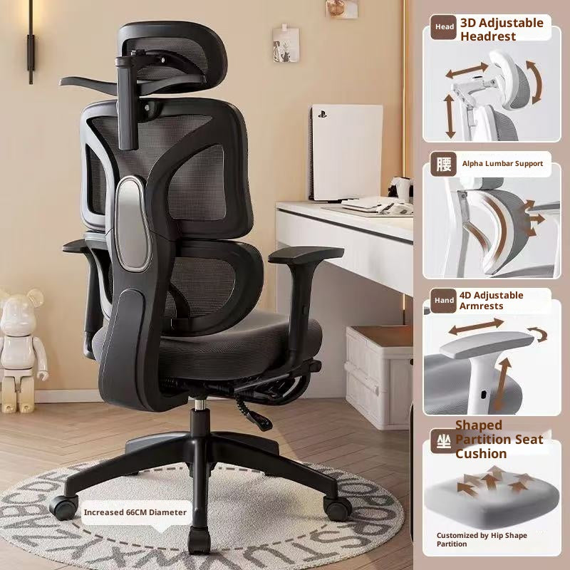 Ultimate Comfort Ergonomic Office Chair with Footrest – Breathable Mesh S‑Shaped Back, Memory Foam Seat & 3D Armrests for Home Office and Gaming