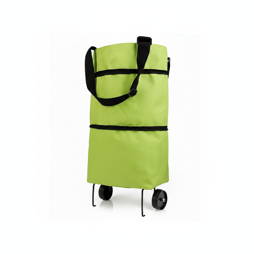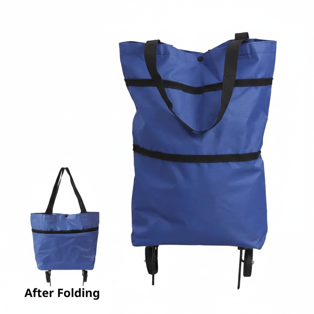 2-in-1 Folding Shopping Cart Trolley with Waterproof Storage Box & Detachable Bag – Telescopic Pull Cart with 2 Wheels for Grocery Shopping, Freight & Travel