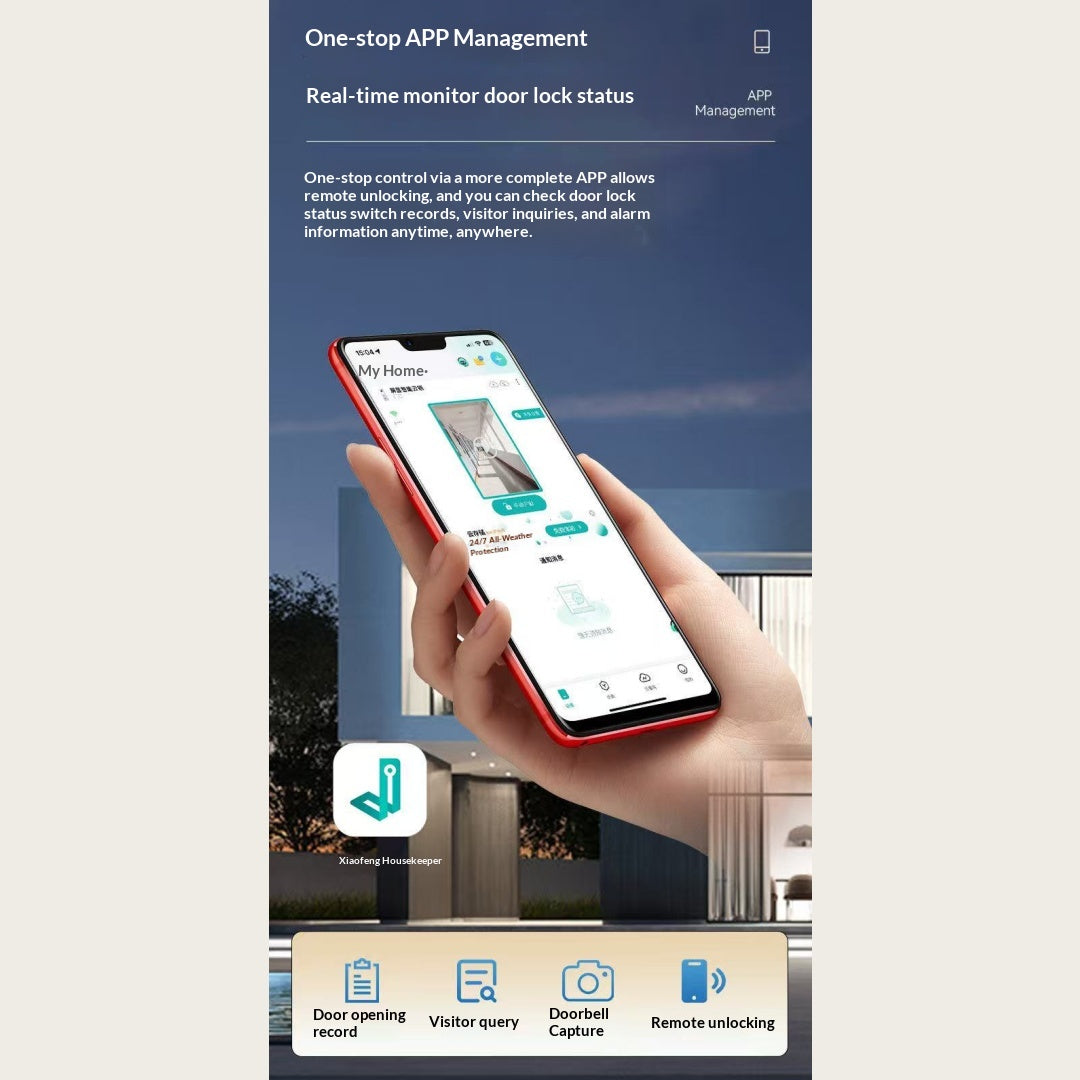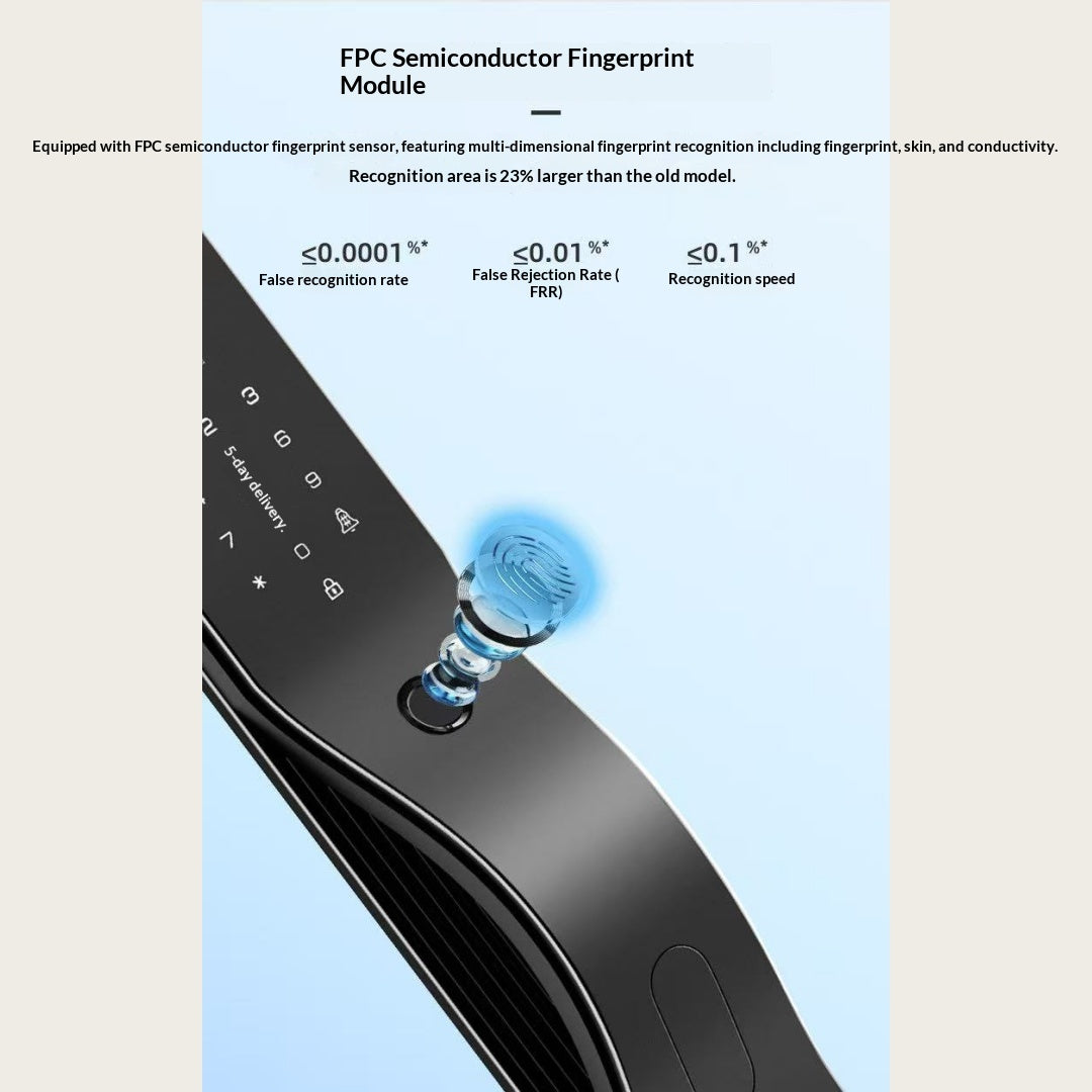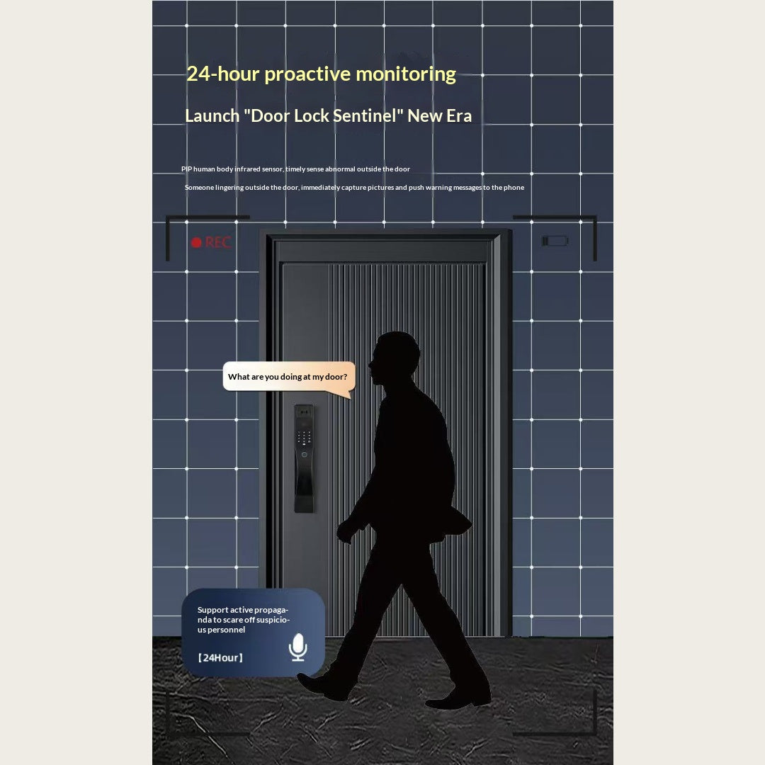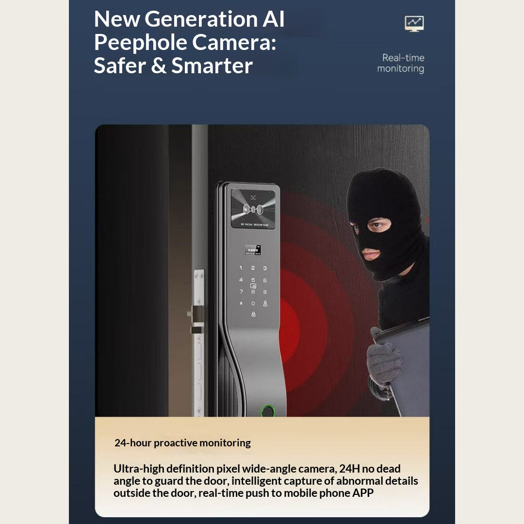 Fully Automatic 3D Face Smart Door Lock – Palm Vein + Fingerprint + IC Card + App + PIN + Key, HD Screen Real‑Time Monitoring, Abnormal Alarm, Fits Saudi Standard 4585 Mortise Lock Body