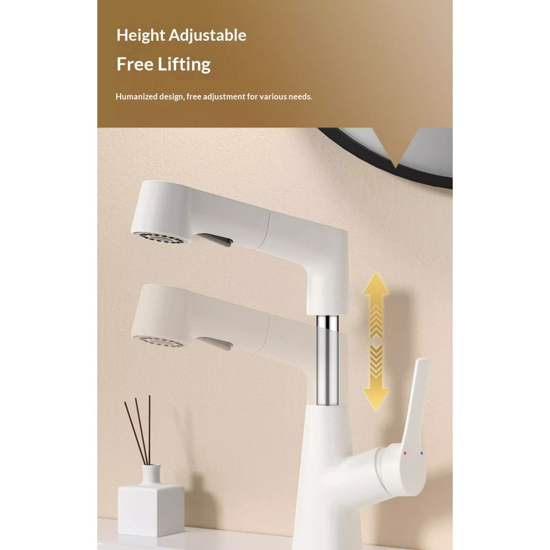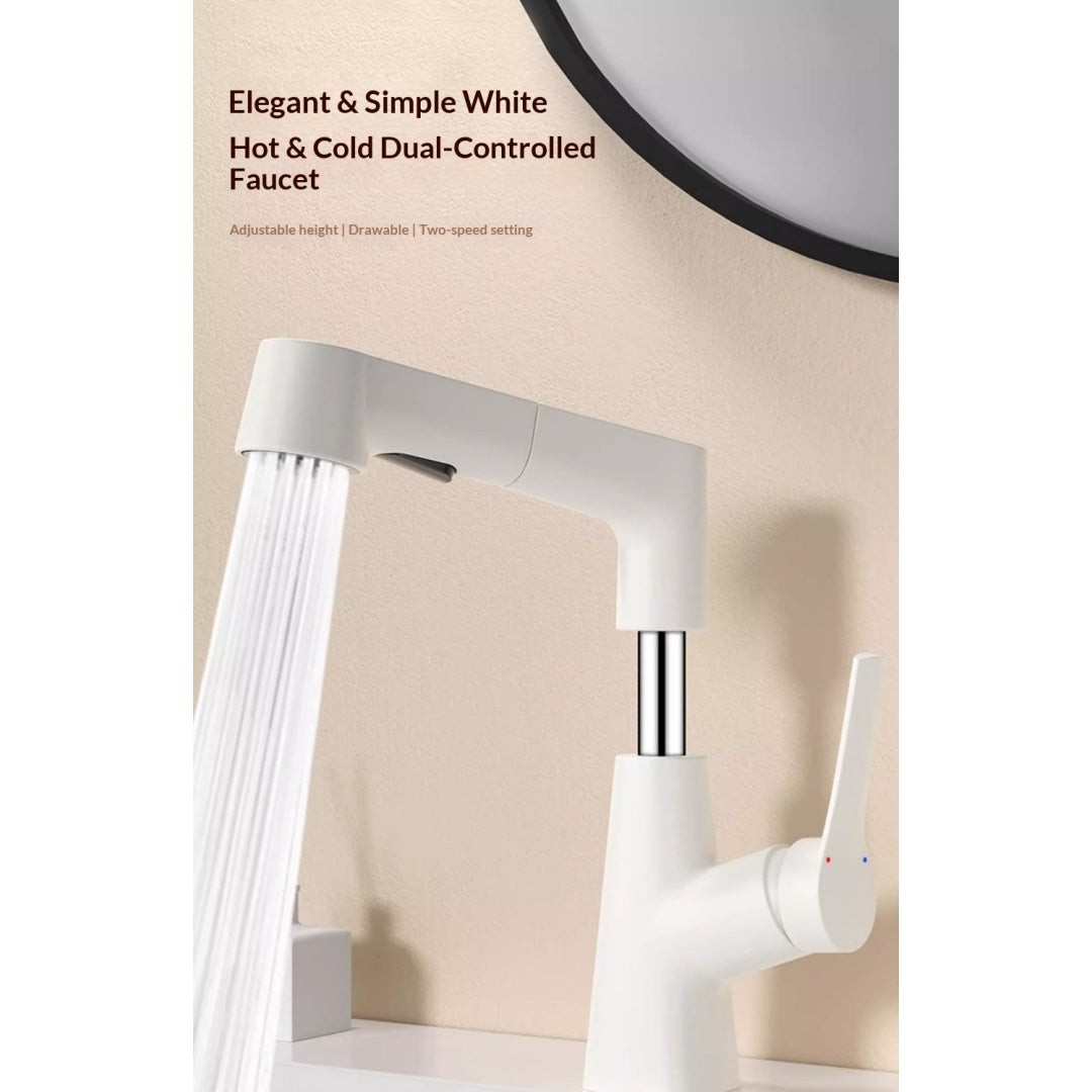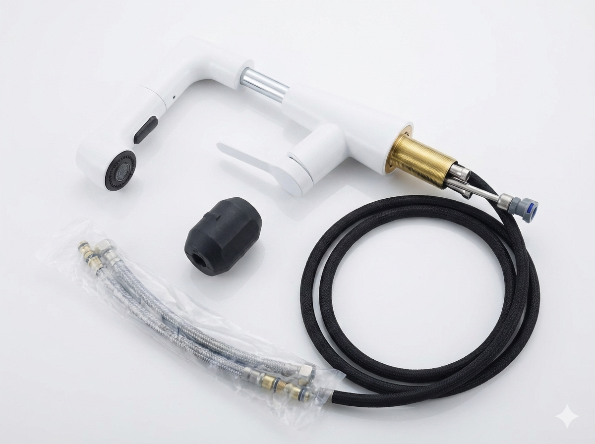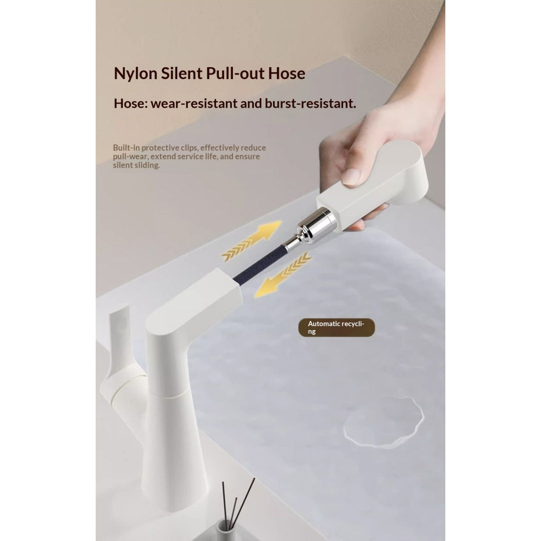 Plastic Kitchen Faucet Hot & Cold Mixer Tap – Pull‑Down Sprayer with Dual‑Mode Flow, Single‑Handle Deck‑Mount Sink Faucet for EU/US Sinks, 360° Swivel, Hoses Included (White)
