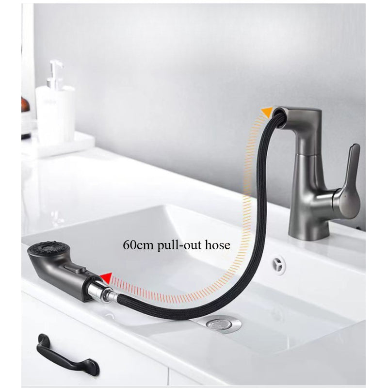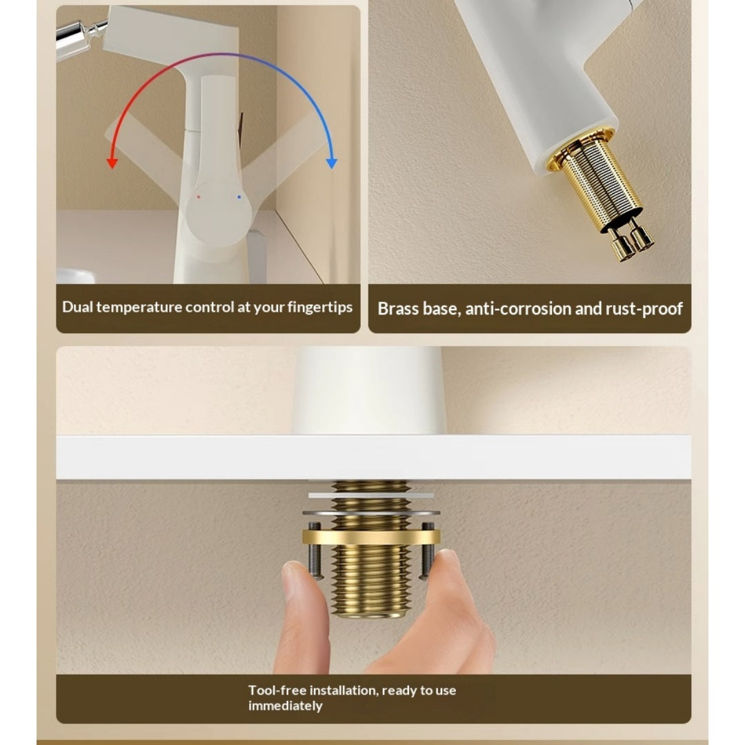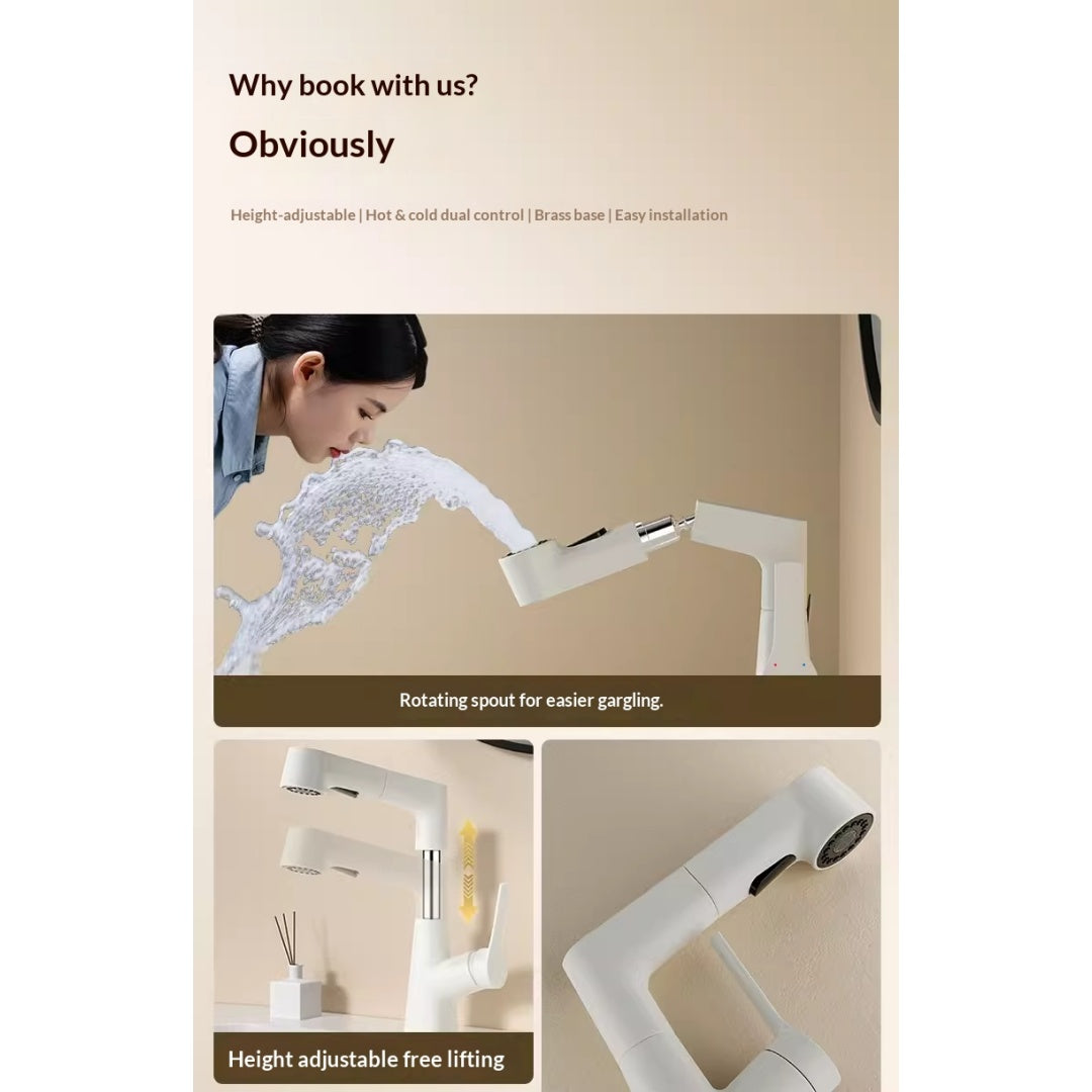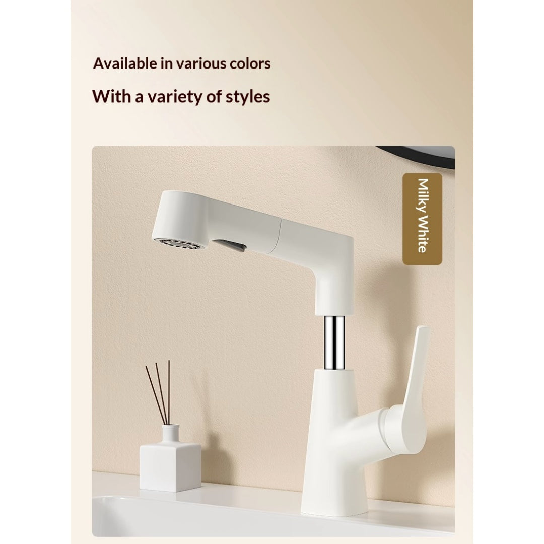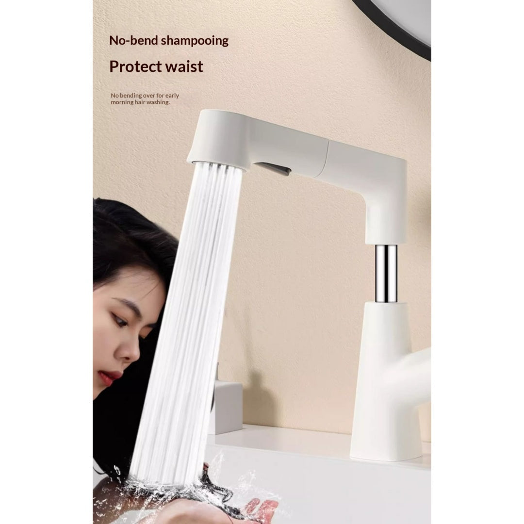 Plastic Kitchen Faucet Hot & Cold Mixer Tap – Pull‑Down Sprayer with Dual‑Mode Flow, Single‑Handle Deck‑Mount Sink Faucet for EU/US Sinks, 360° Swivel, Hoses Included (White)