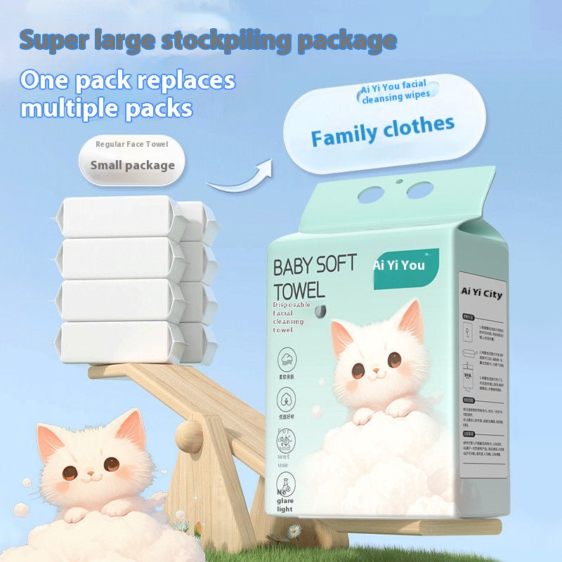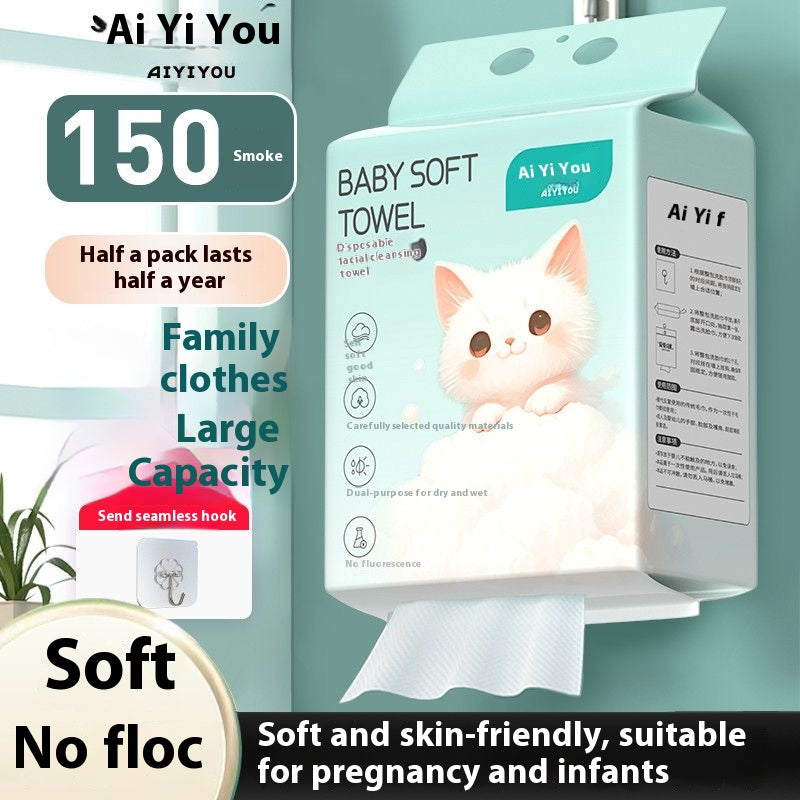 Extra Large Disposable Facial Towels 150 Count, Lint Free Pure Cotton, Hanging Design for Makeup Removal
